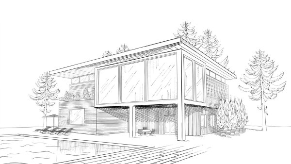 Дом с бассейном эскиз