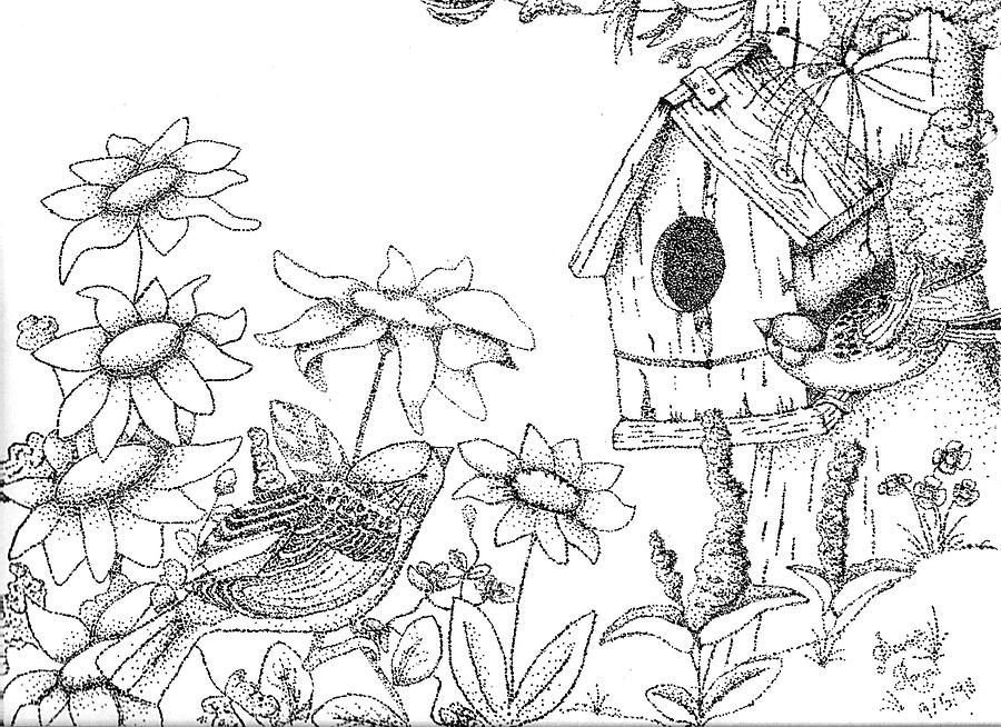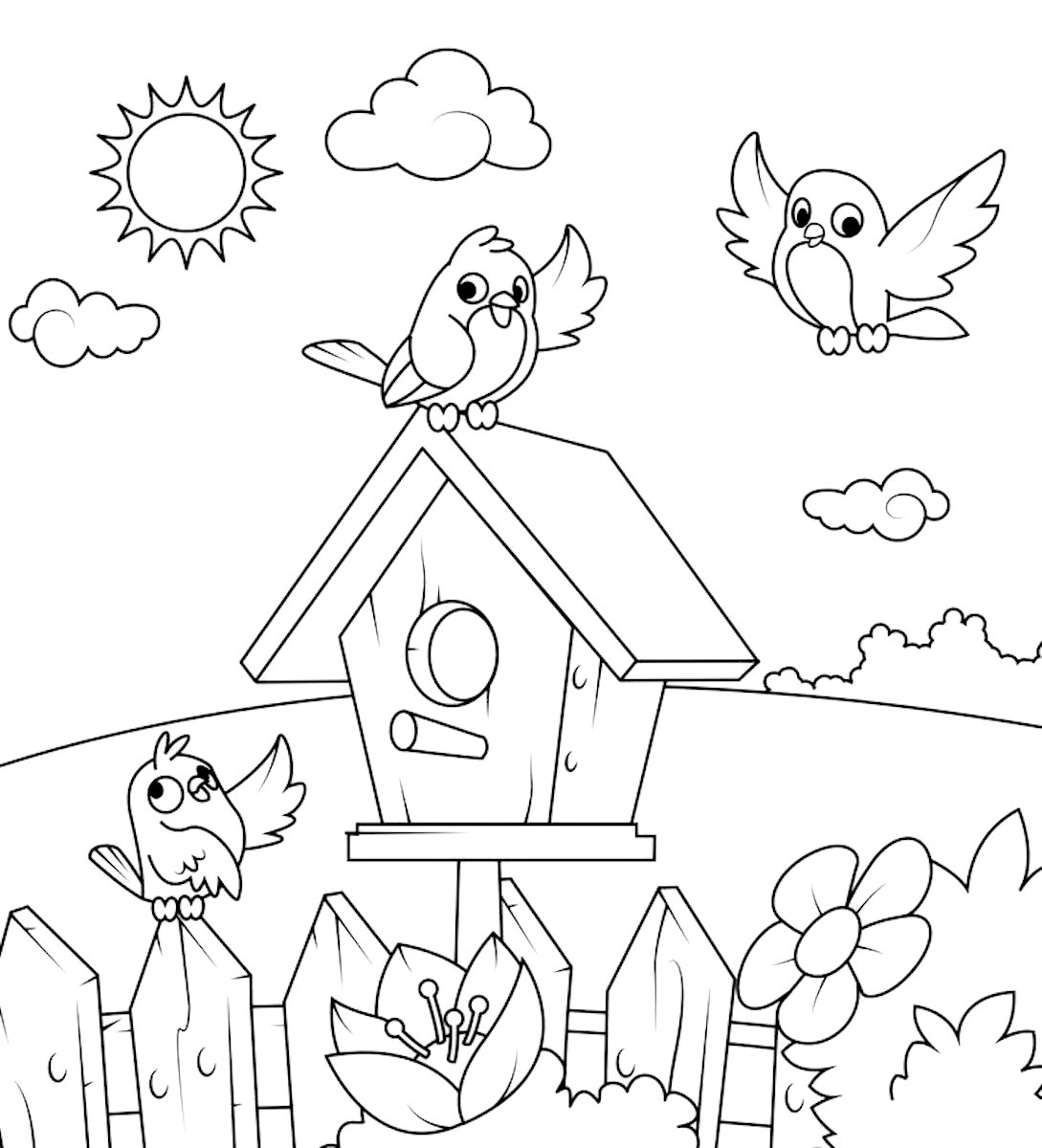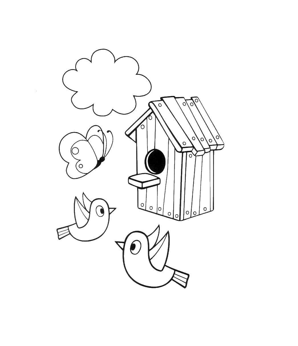 Скворечник с птицами раскраска