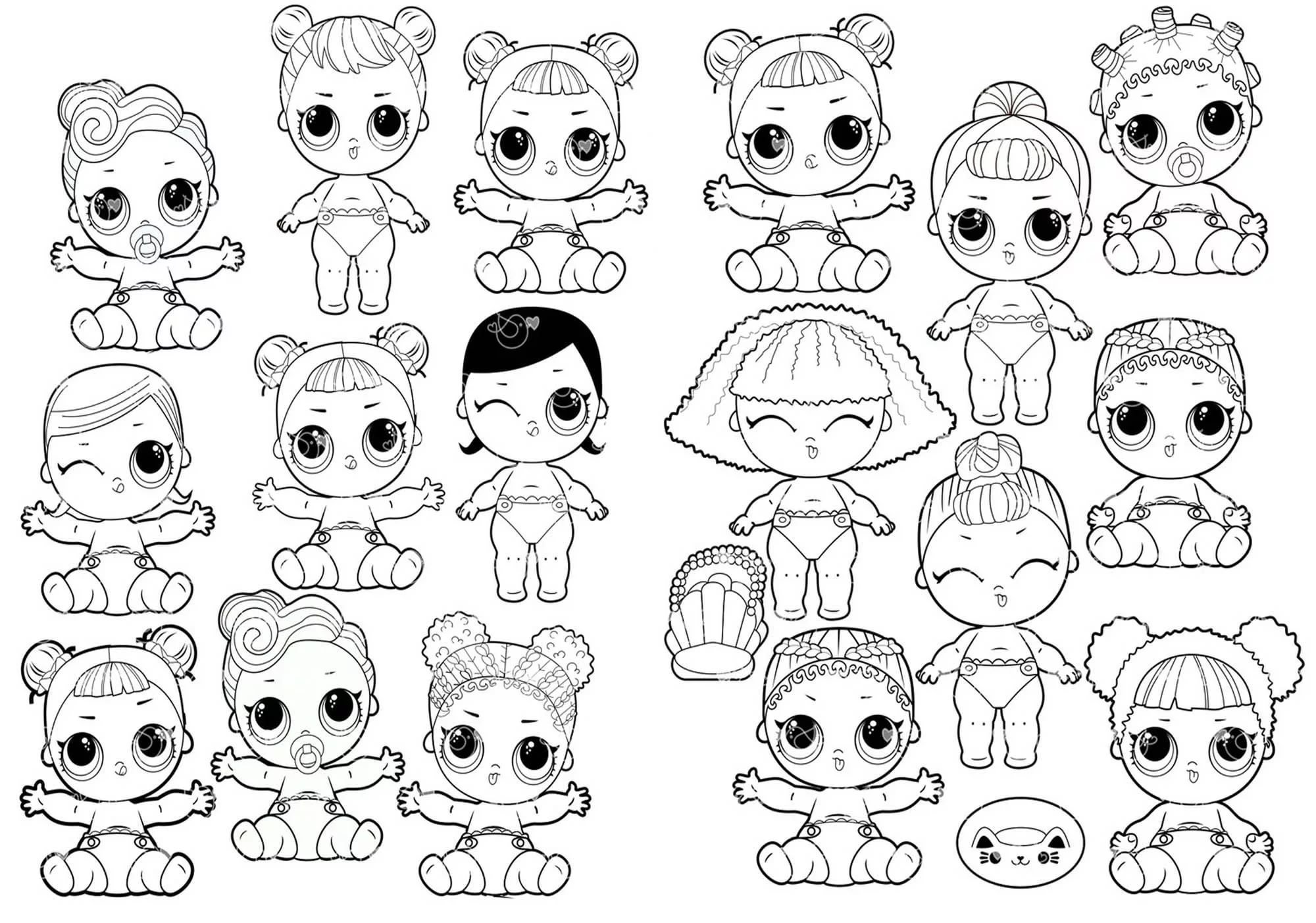 Раскраска куклы ЛОЛ много