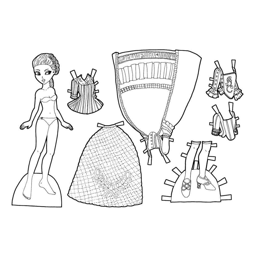 Раскраска дом с куклой и одеждой