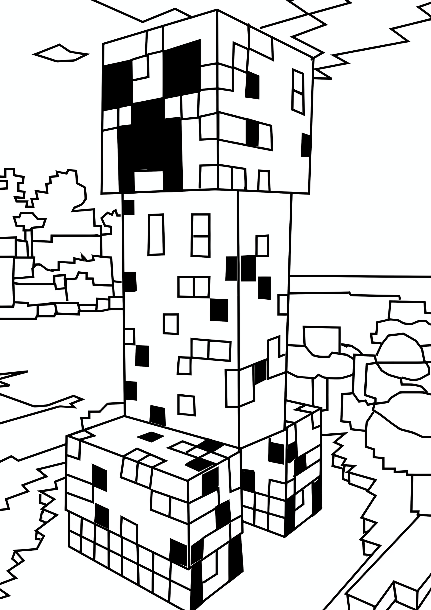 ![Раскраска майнкрафт постройки]()