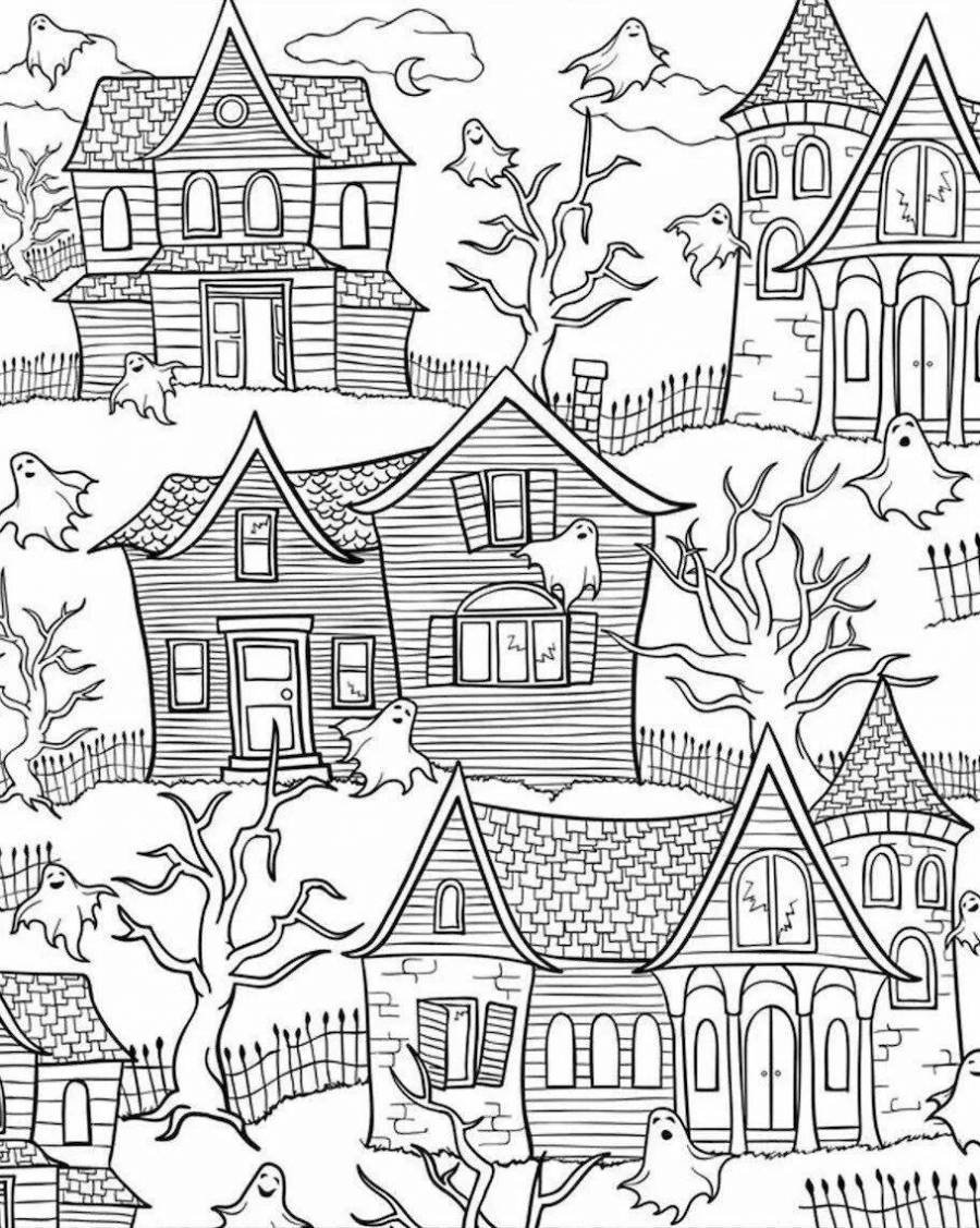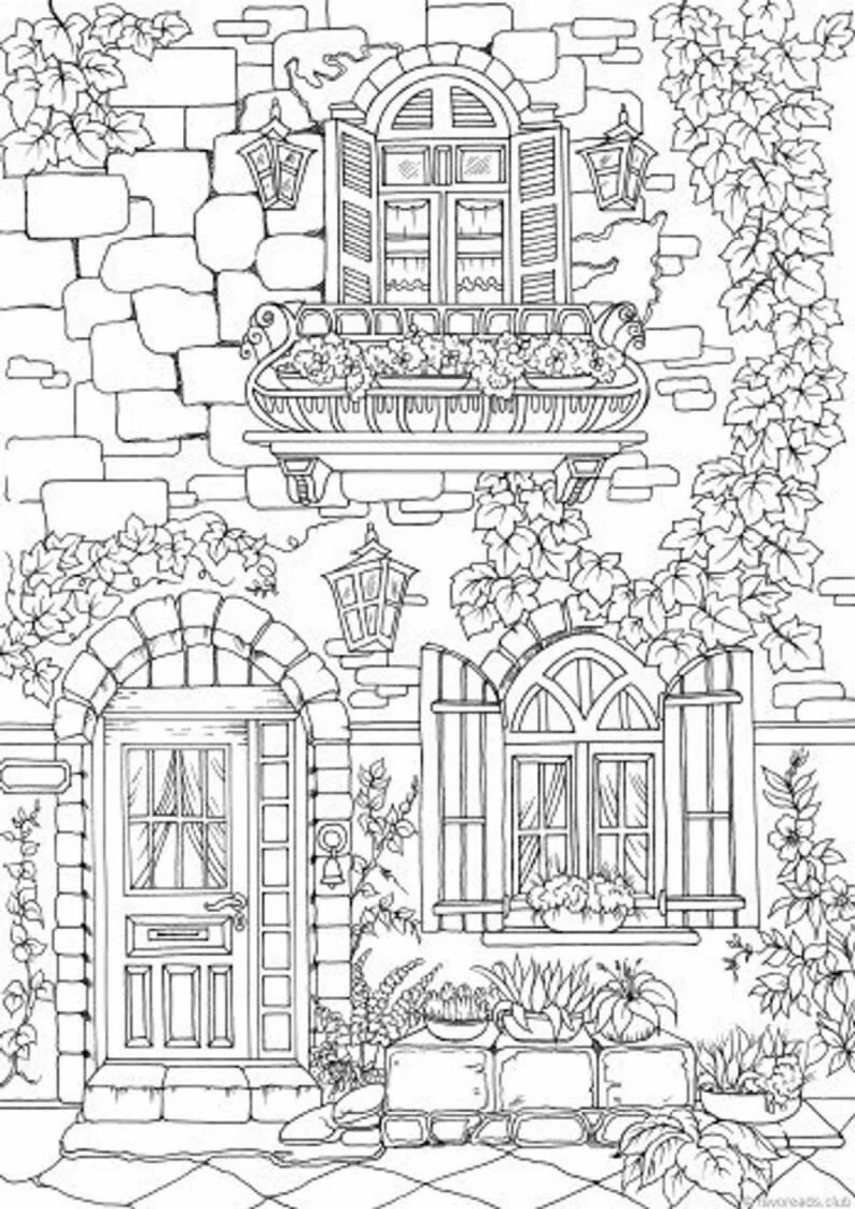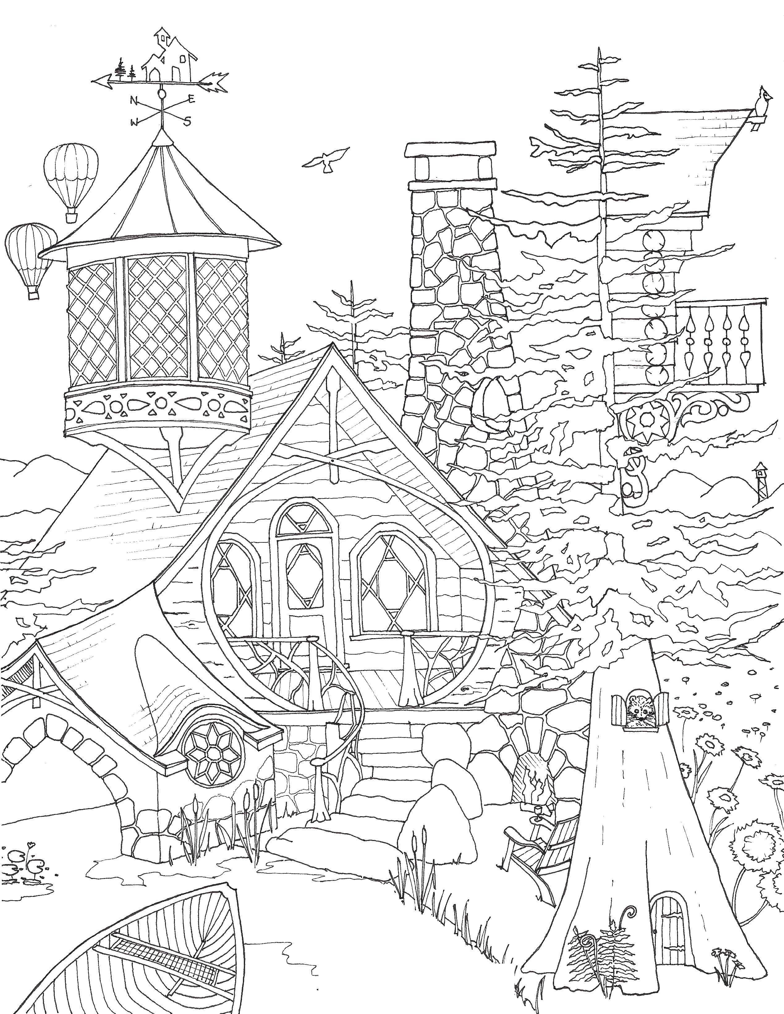 Раскраски сложные домики