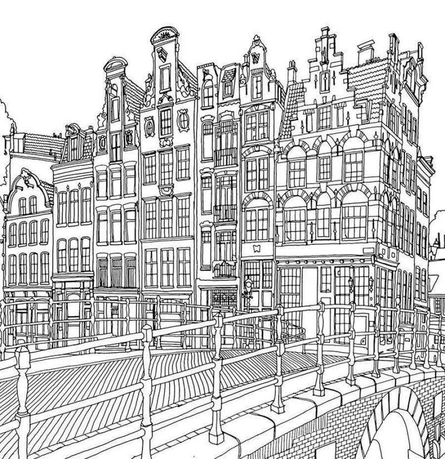 ![Архитектурный пейзаж раскраска]()