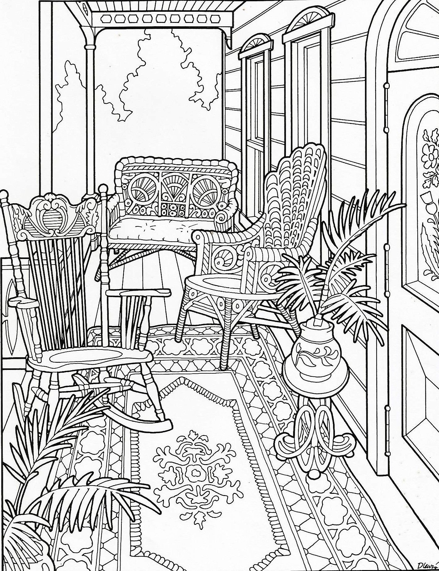 ![Раскраска уютный интерьер]()