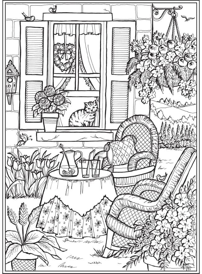 ![Раскраска для взрослых дом]()