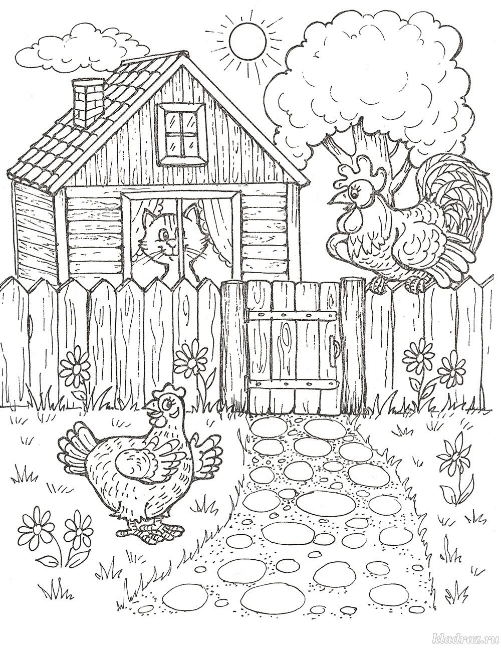 ![Забор курицы раскраска]()