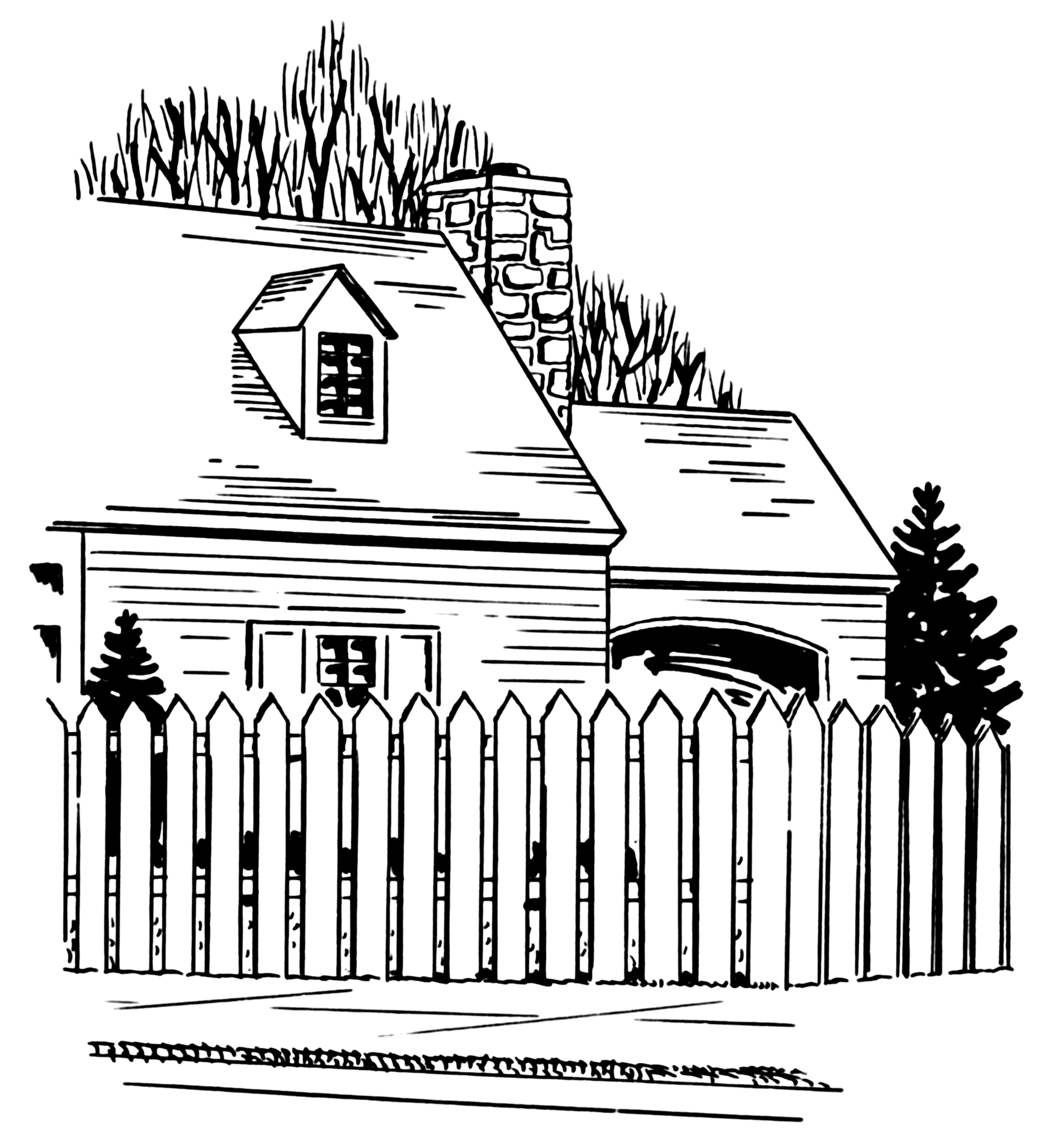 Раскраска домик с забором