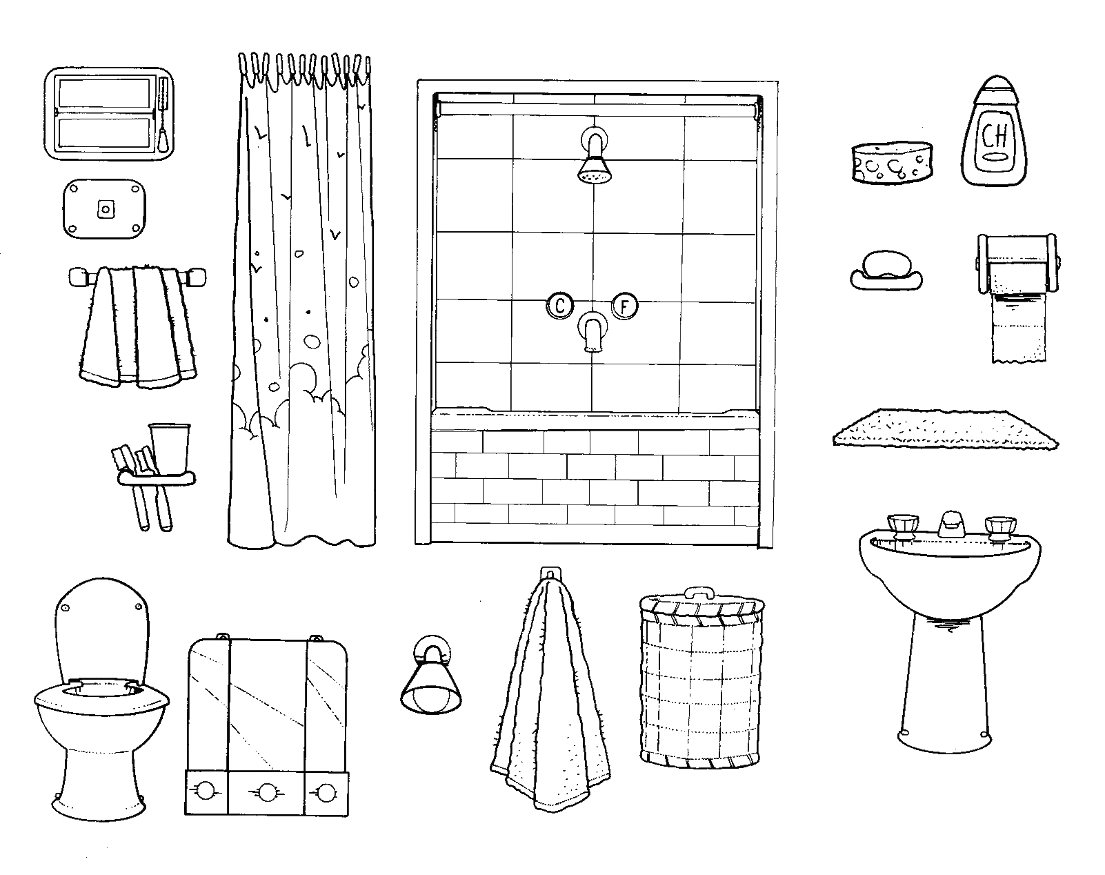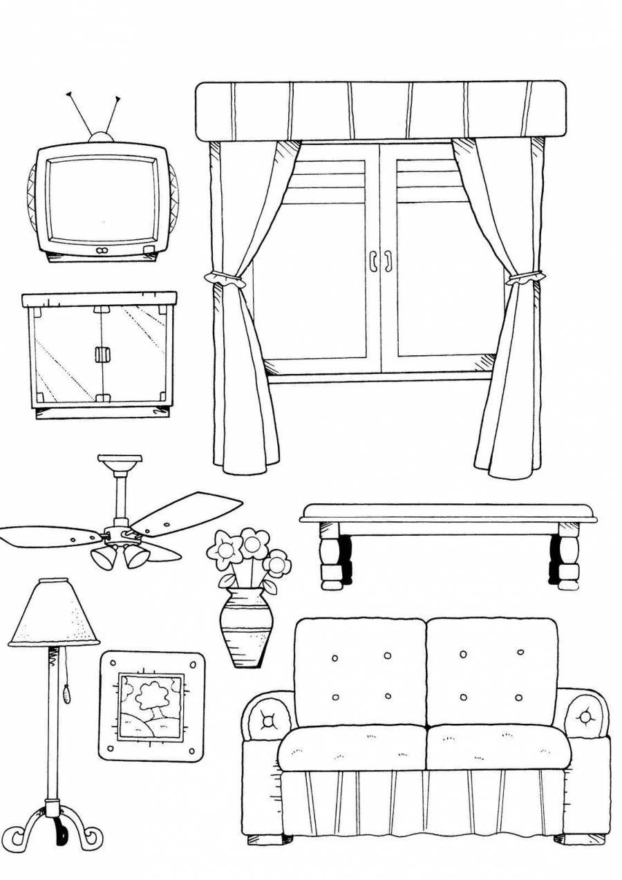 ![Мебель для бумажных кукол раскраски]()