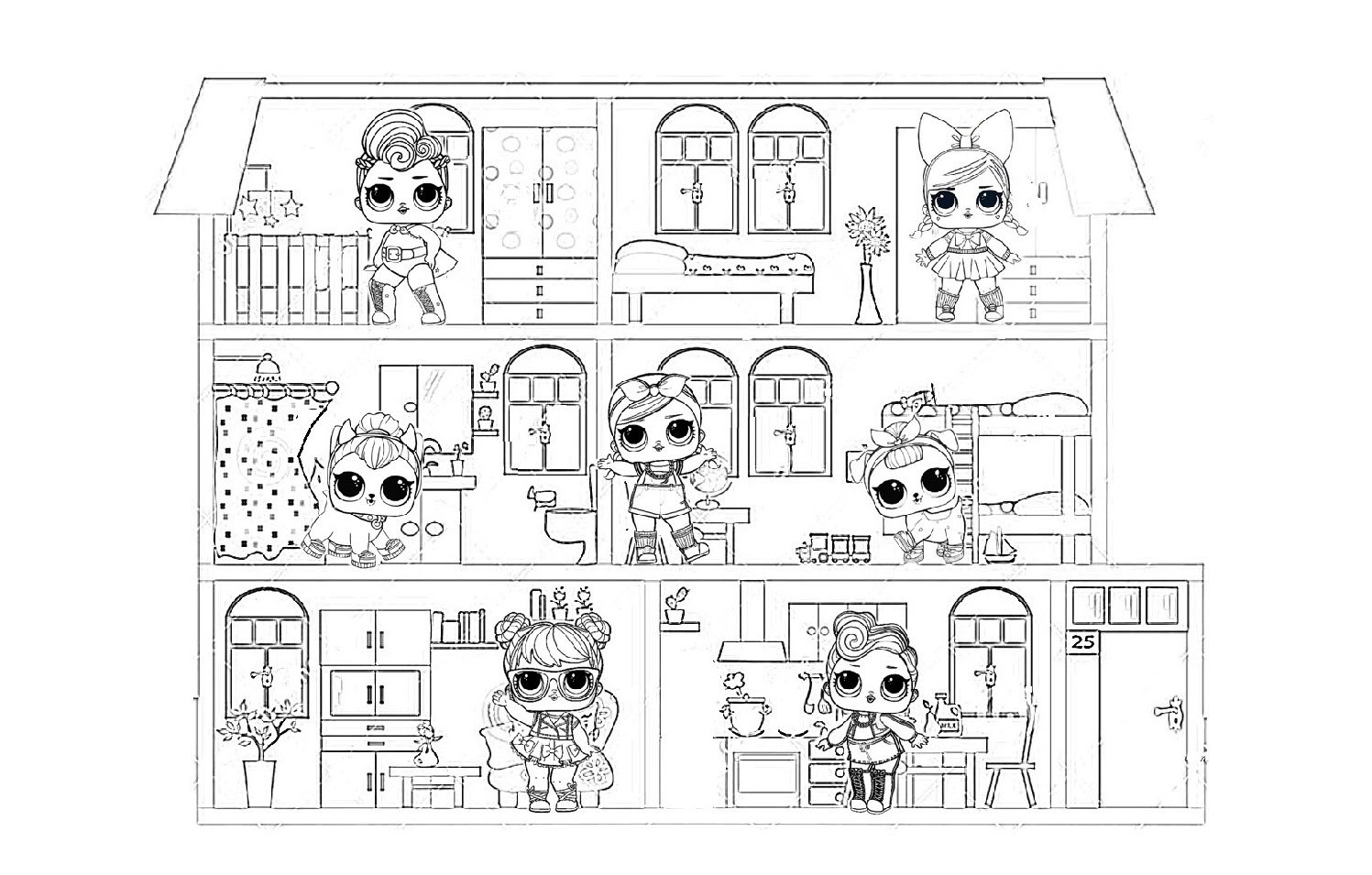 ![Дом куклы ЛОЛ раскраска]()