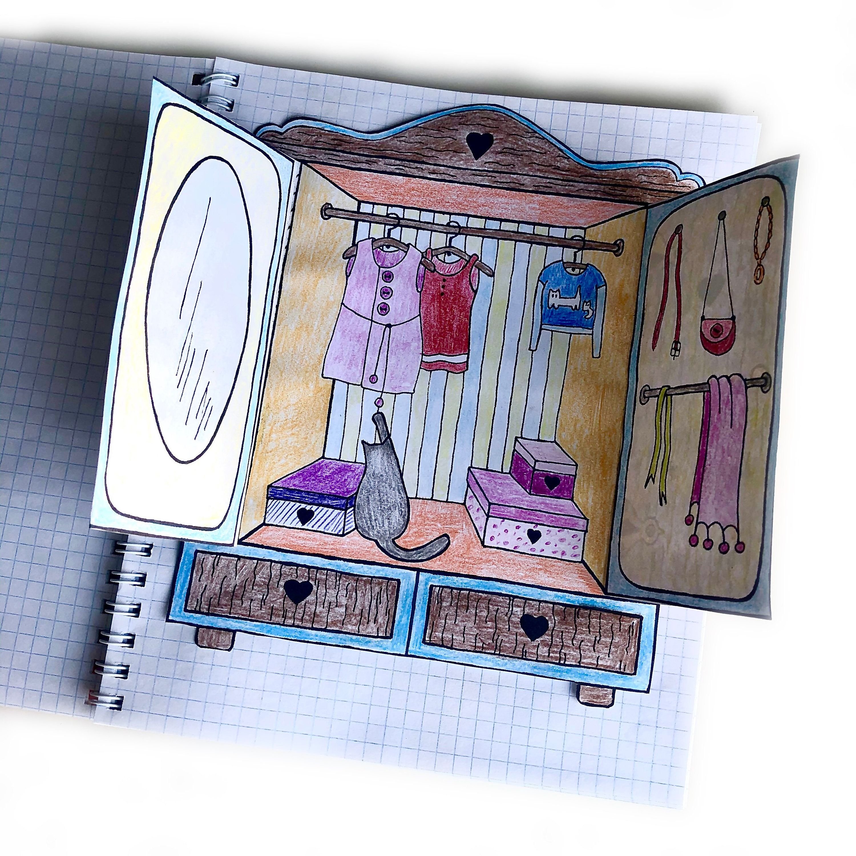 ![Бумажный домик в тетради]()