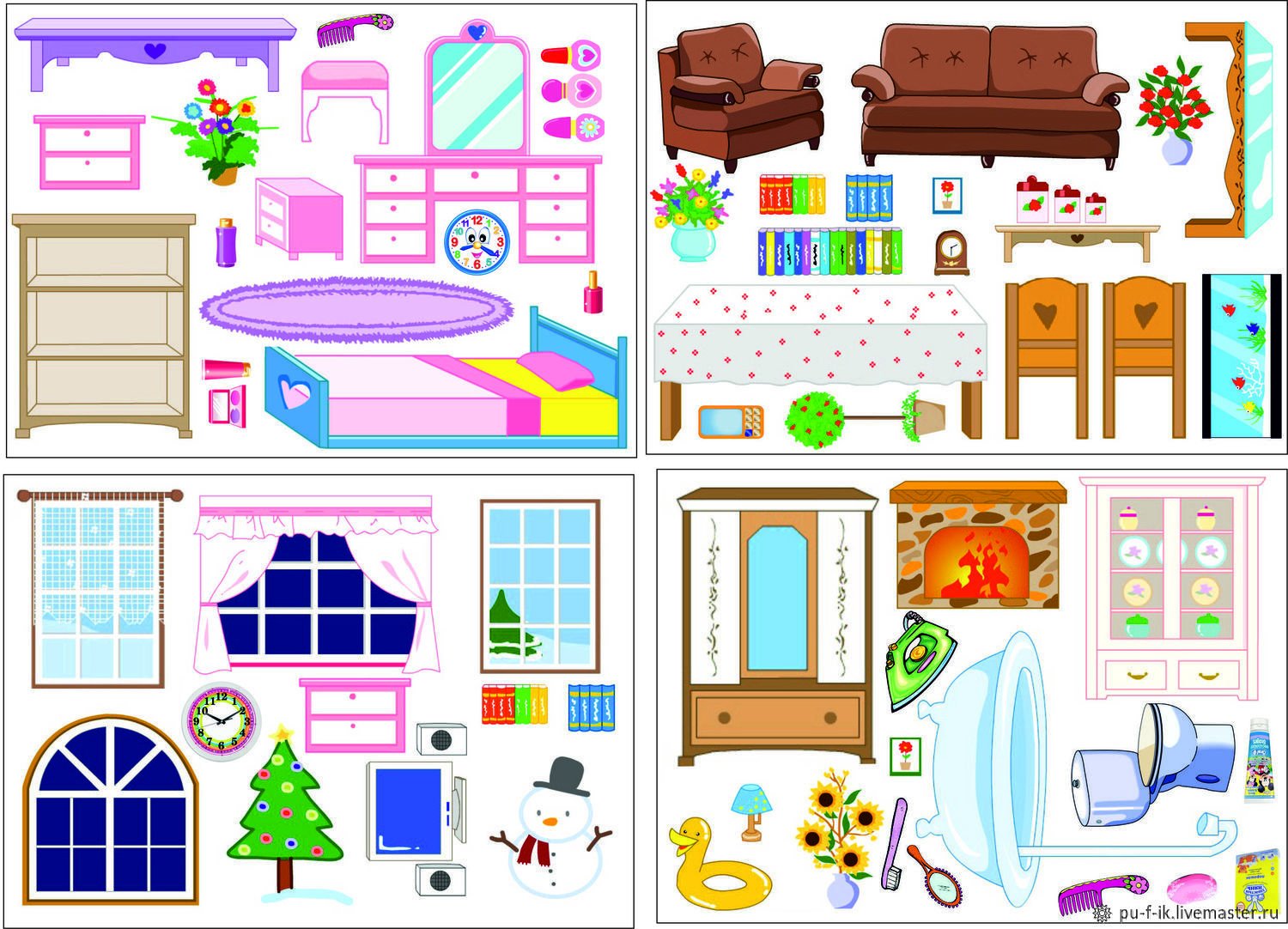 ![Нарисованная мебель для бумажных кукол]()