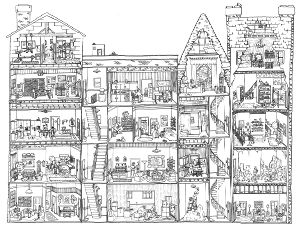 Раскраска домик с комнатами