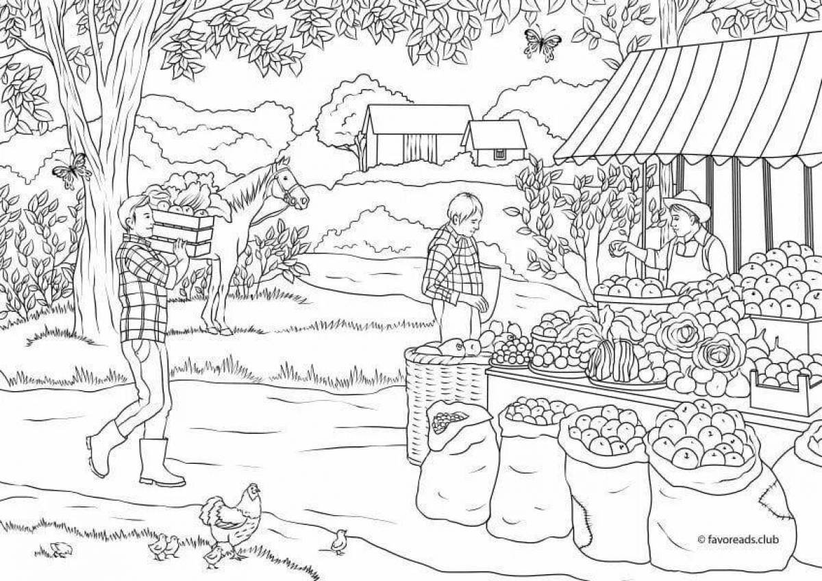 Раскраска деревенский дворик для детей