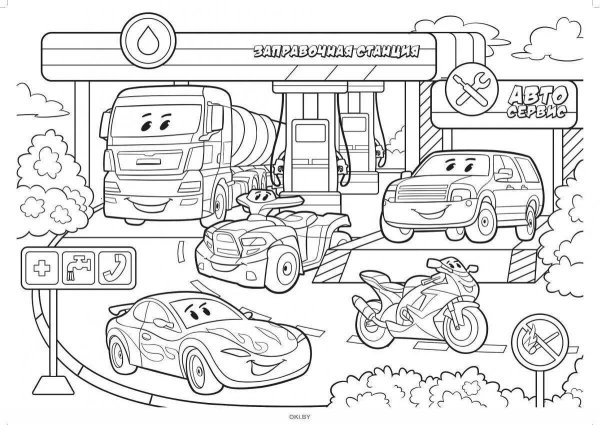 В городе машин раскраска