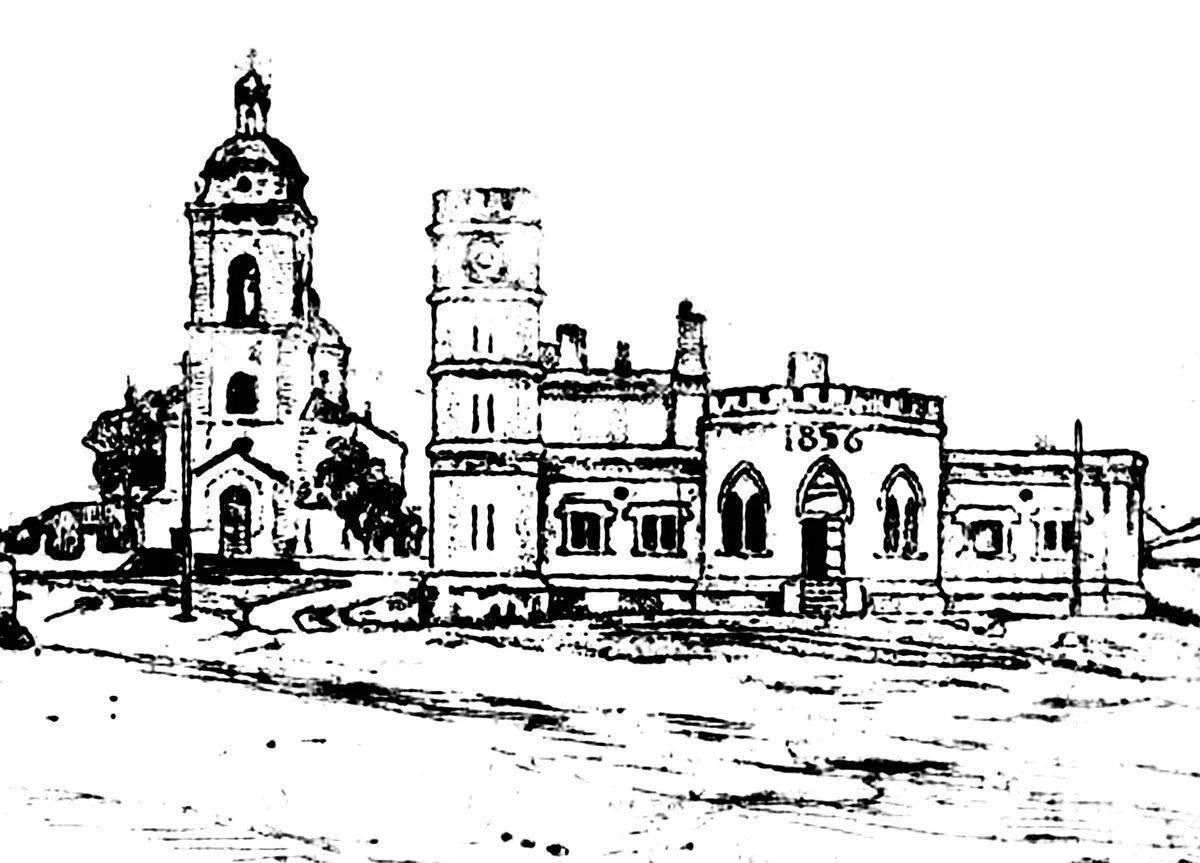 ![Музей Пушкина города Оренбург черно белый рисунок]()
