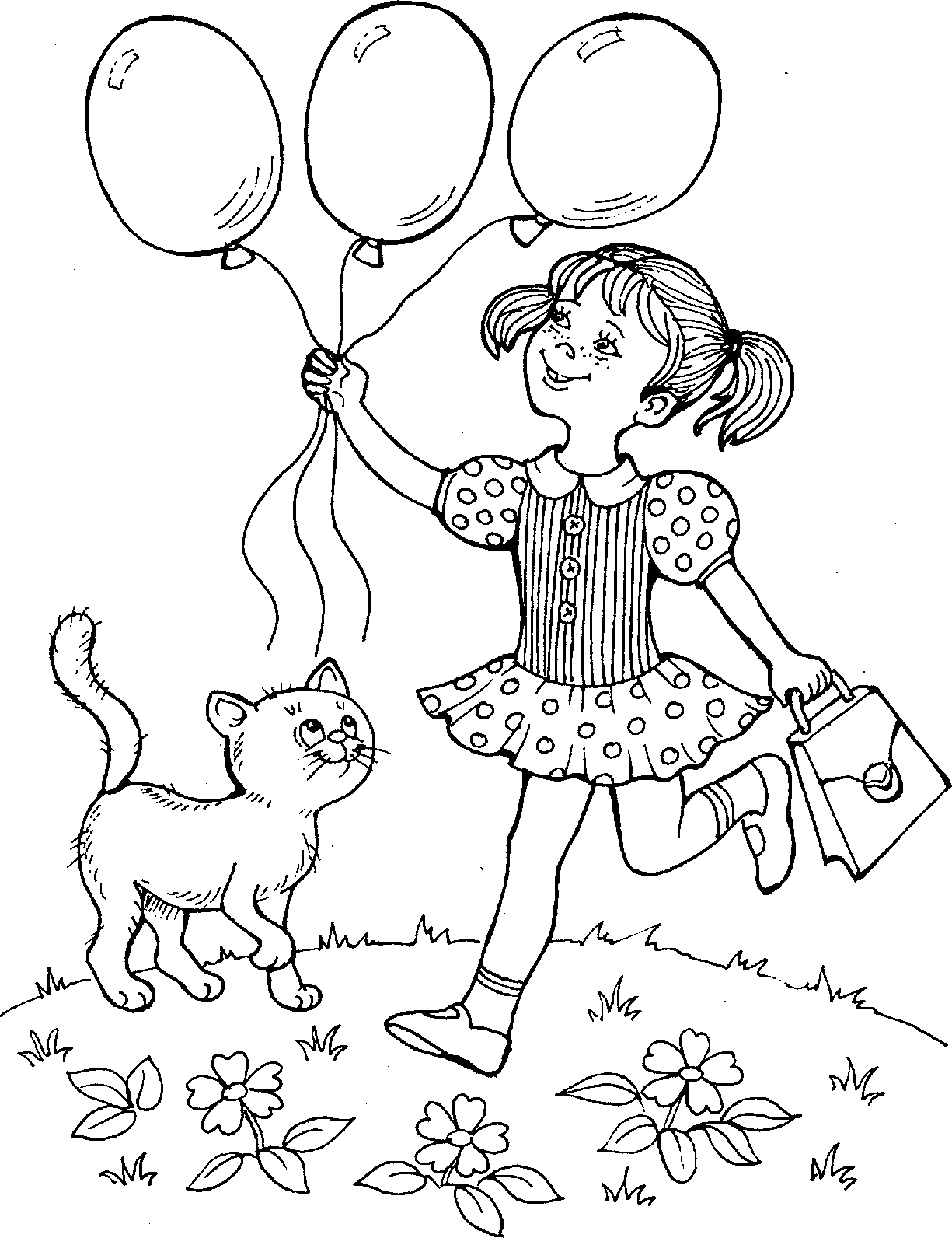 Девочка с шариками раскраска