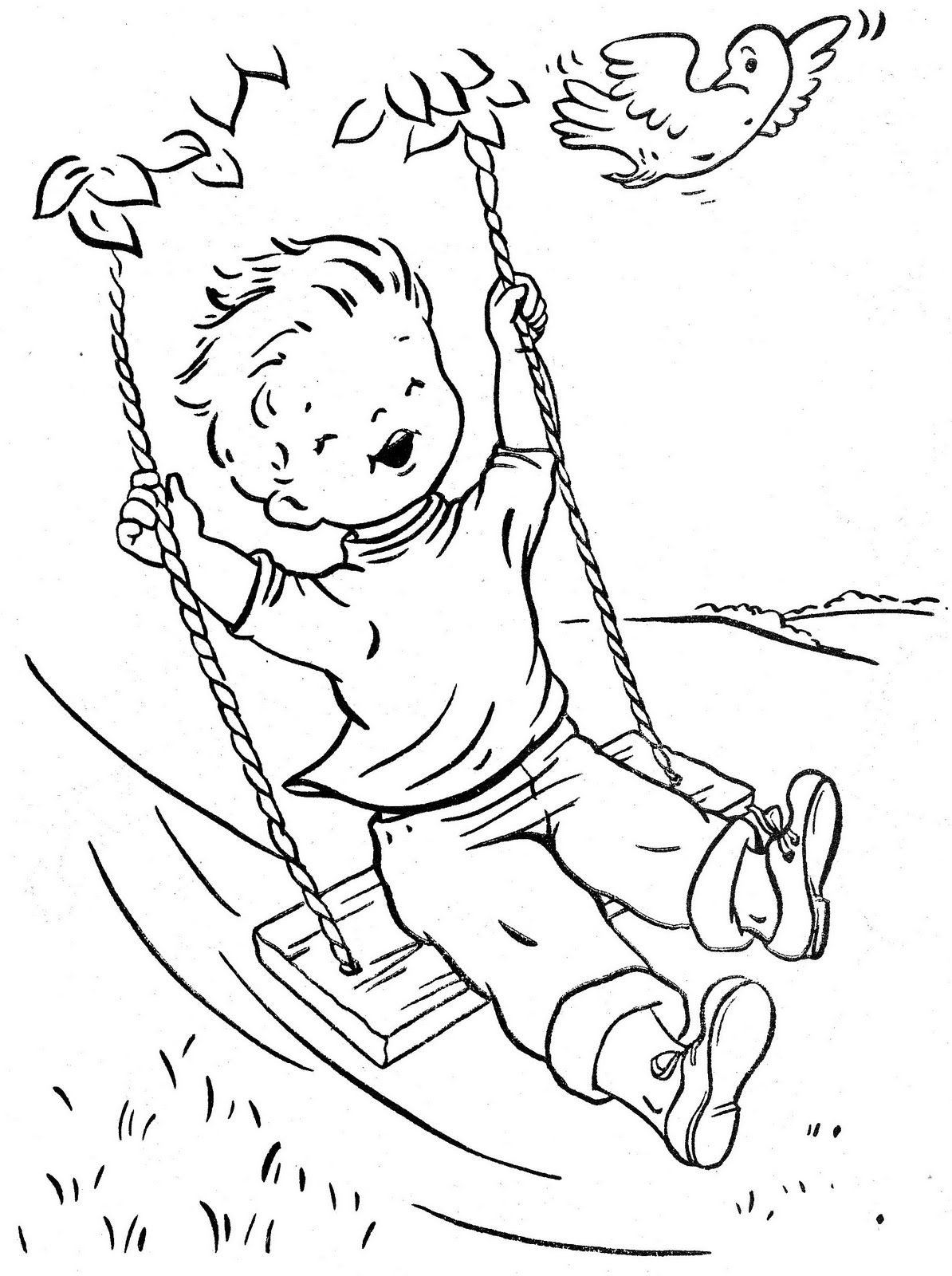 ![Качели раскраска для детей]()