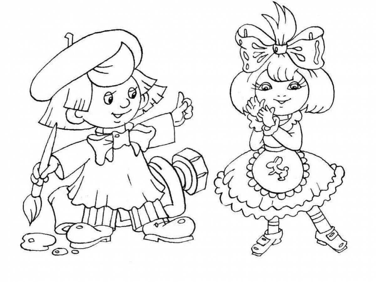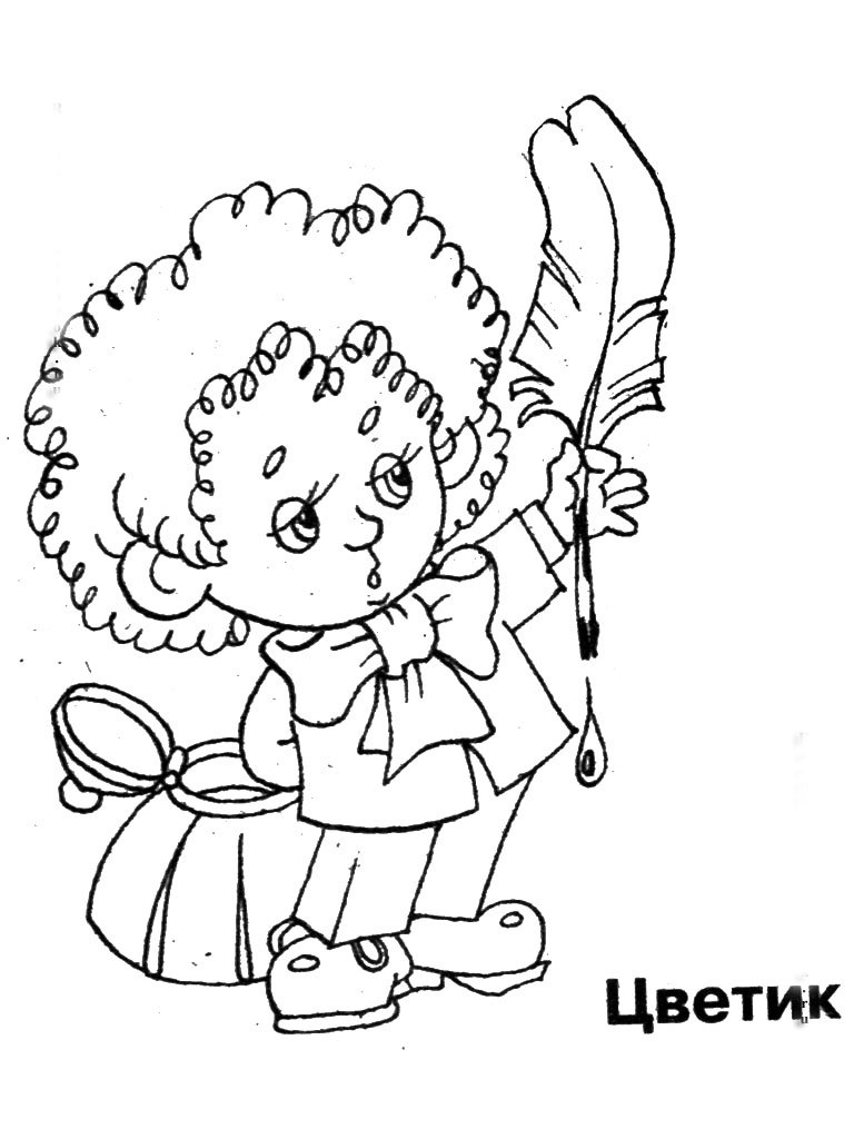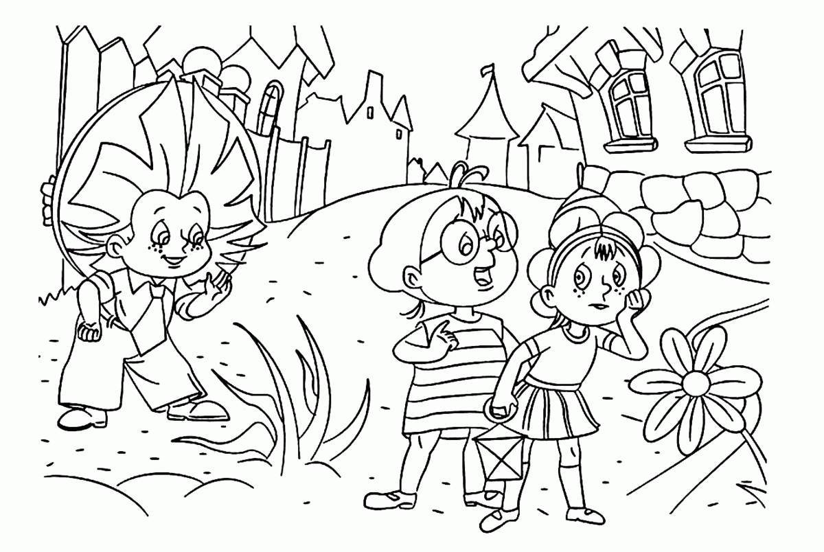 ![Незнайка и его друзья в Солнечном городе раскраска]()