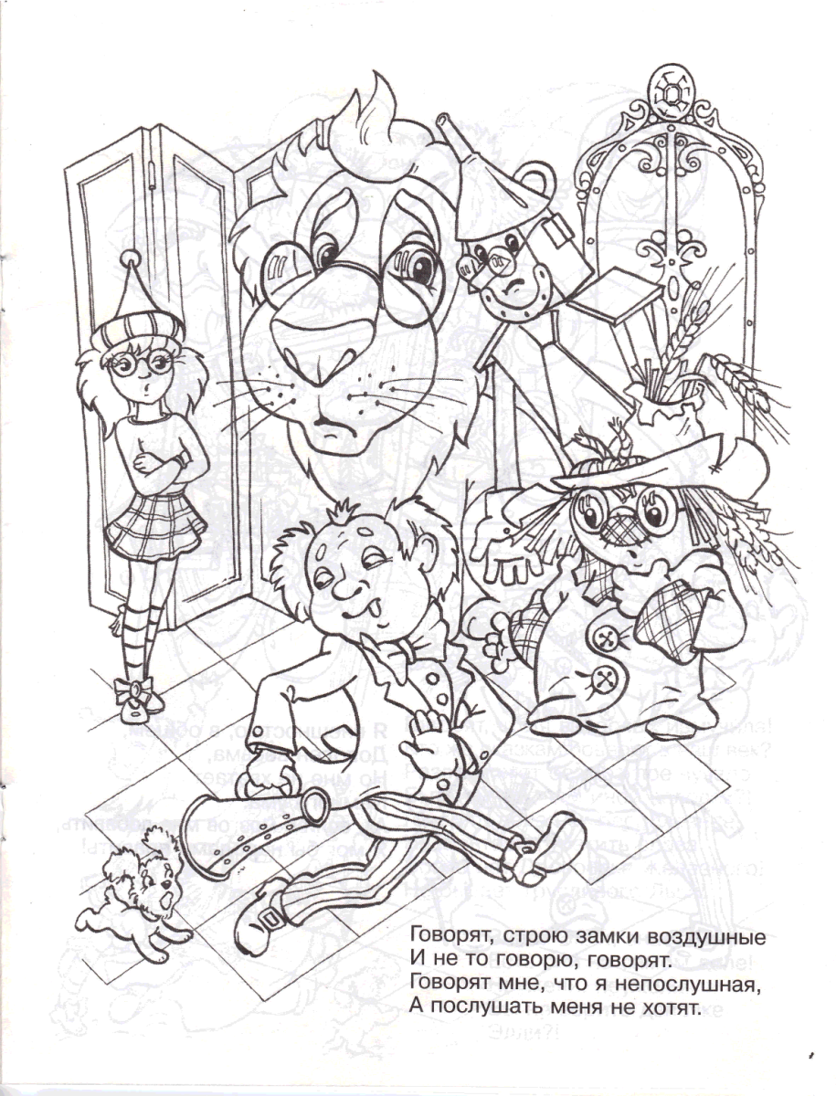 Раскраска к сказке волшебник изумрудного города Элли
