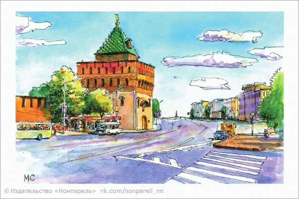 ![Коромыслова башня Нижегородского Кремля рисунок]()
