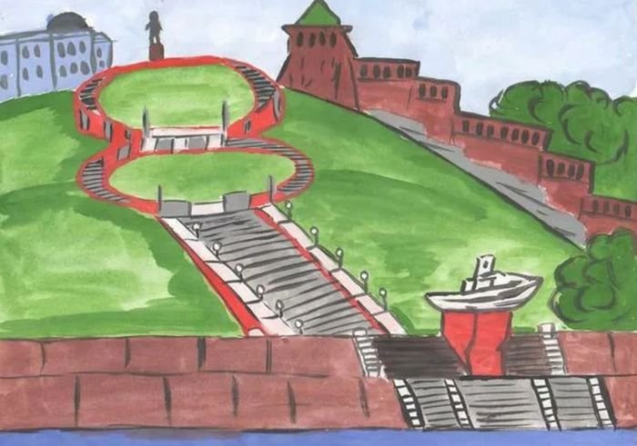 Чкаловская лестница Нижний Новгород рисунок для детей