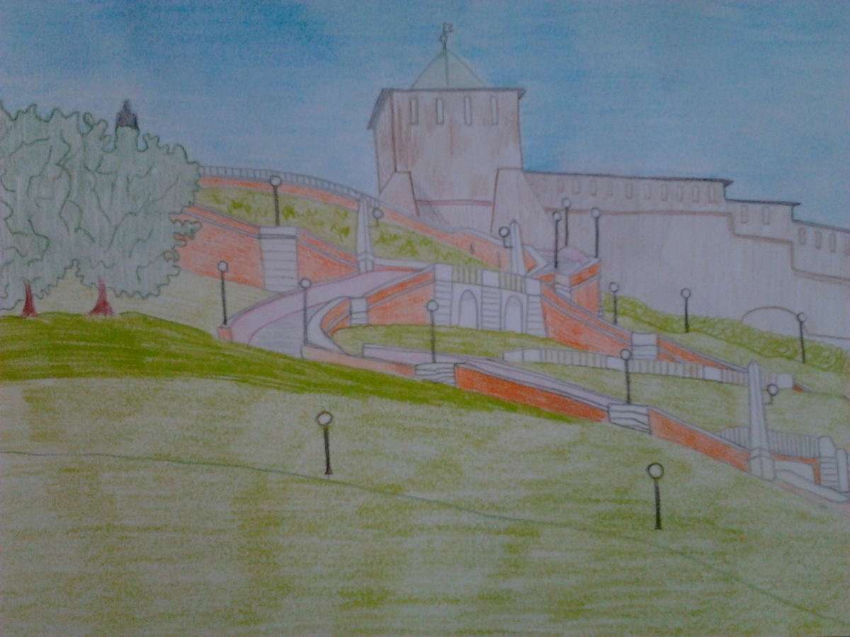 ![Чкаловская лестница Нижегородского Кремля рисунок]()