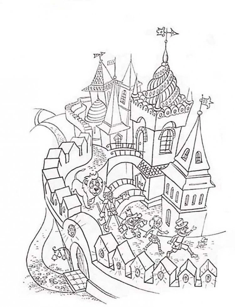 Раскраска к сказке волшебник изумрудного города