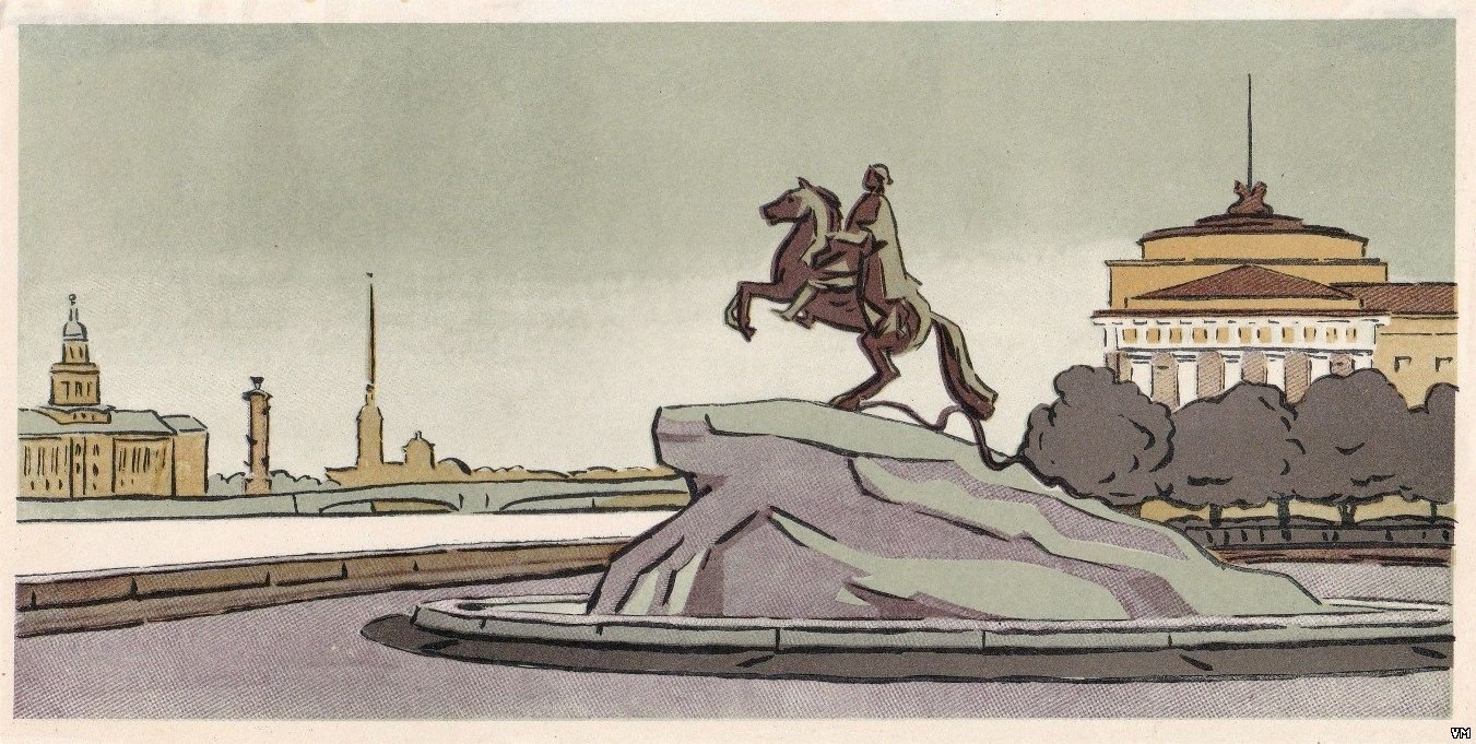 ![Памятник Петру 1 в Санкт-Петербурге рисунок]()