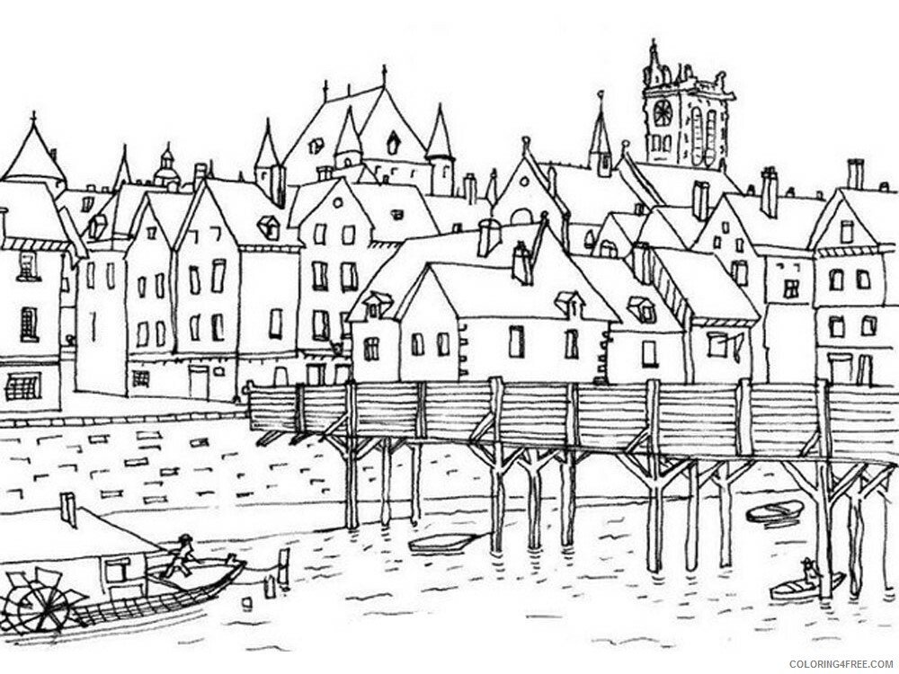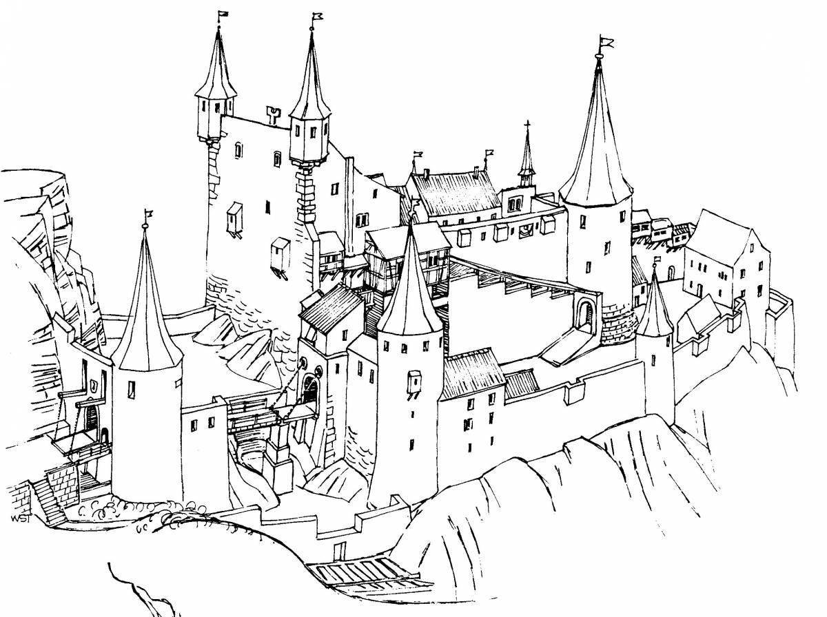 ![Средневековый город раскраска]()