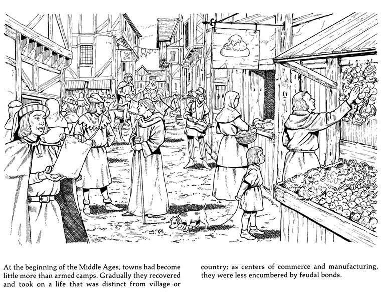 ![Рынок в средневековье раскраска]()