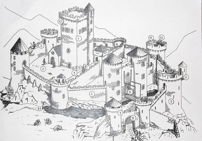 ![Рыцарский замок в средневековой Европе рисунок]()