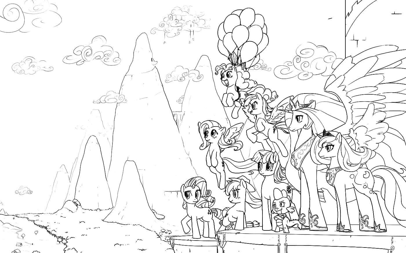 ![Раскраска пони вместе]()