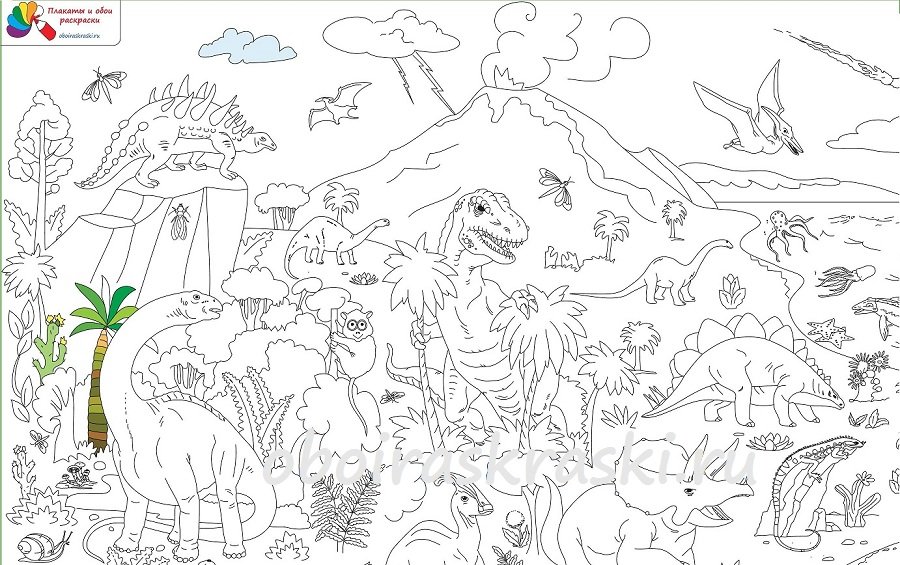![Большая раскраска динозавры]()