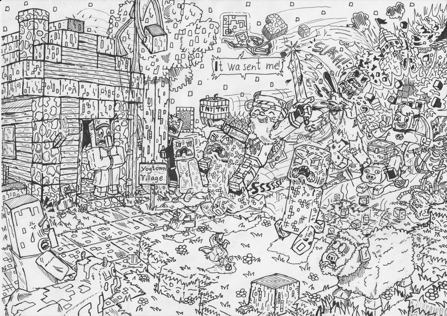 Раскраски майнкрафт сложные