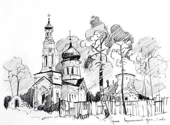 Рисунок дорога к храму карандашом