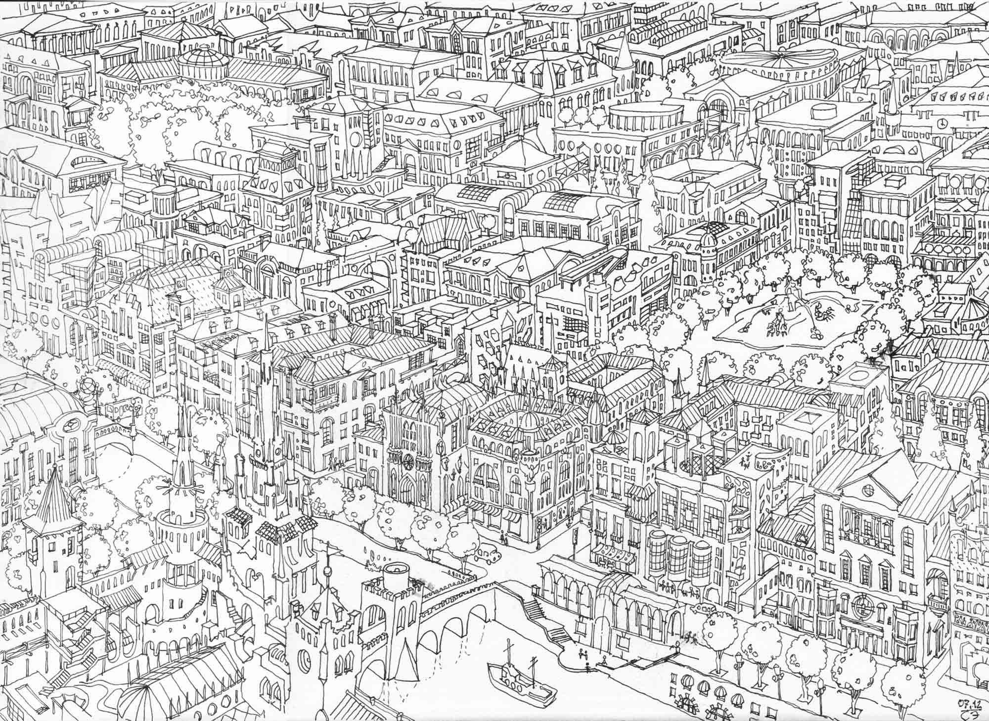 ![Раскраска сложная город]()