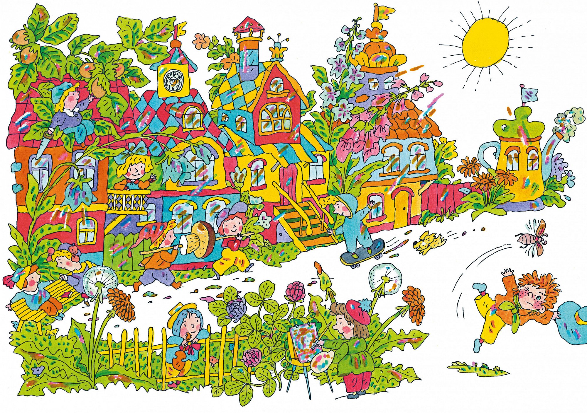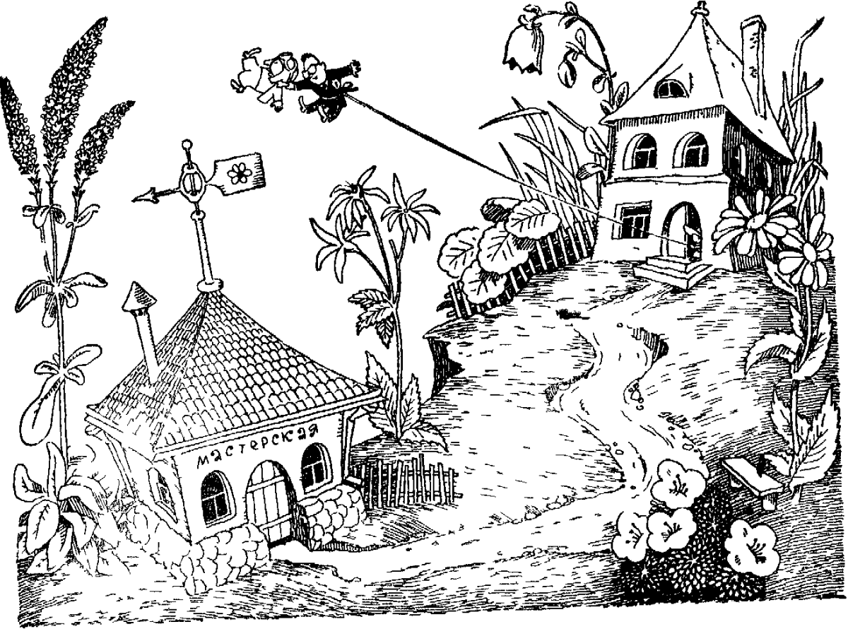 ![Незнайка в цветочном городе иллюстрация и черно белые]()