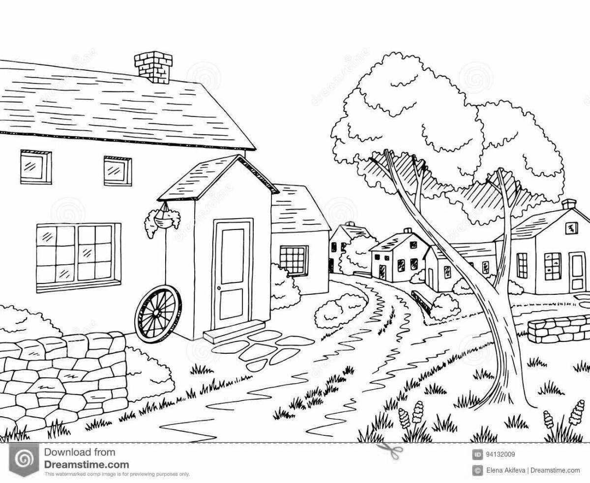 ![Деревня раскраска для детей]()