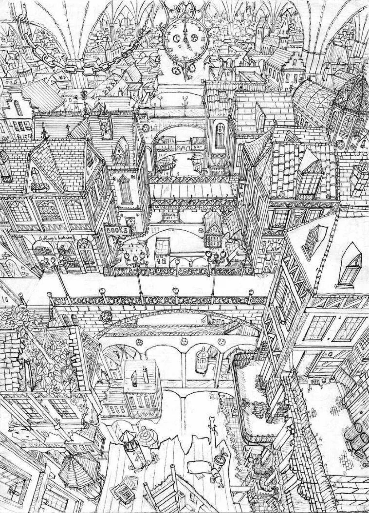 Раскраска сложная город