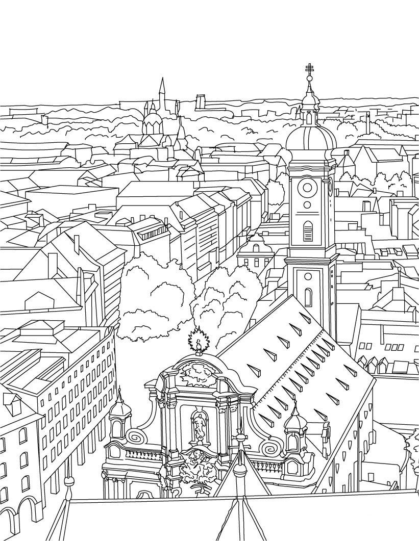 Городской пейзаж раскраска