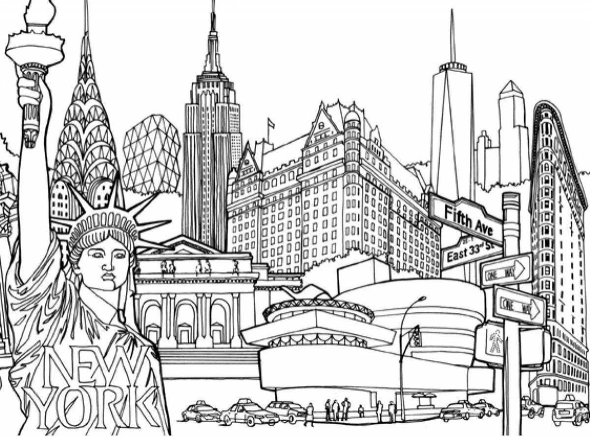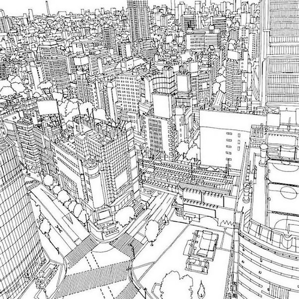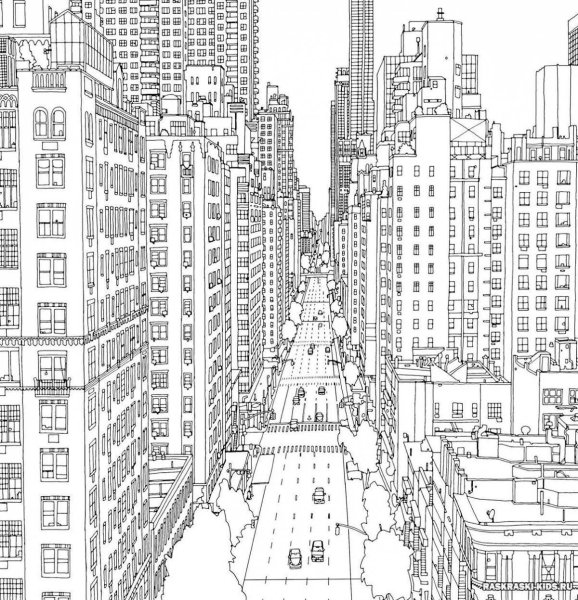 ![Городской пейзаж раскраска]()