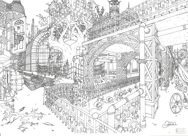 ![Раскраска сложная город]()