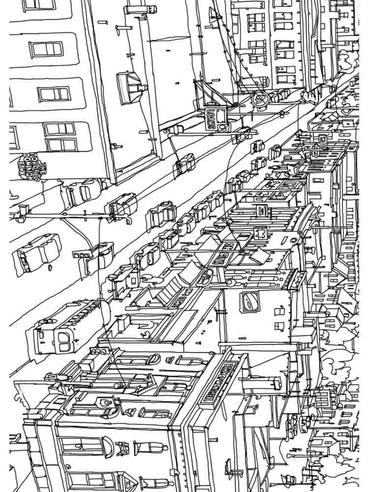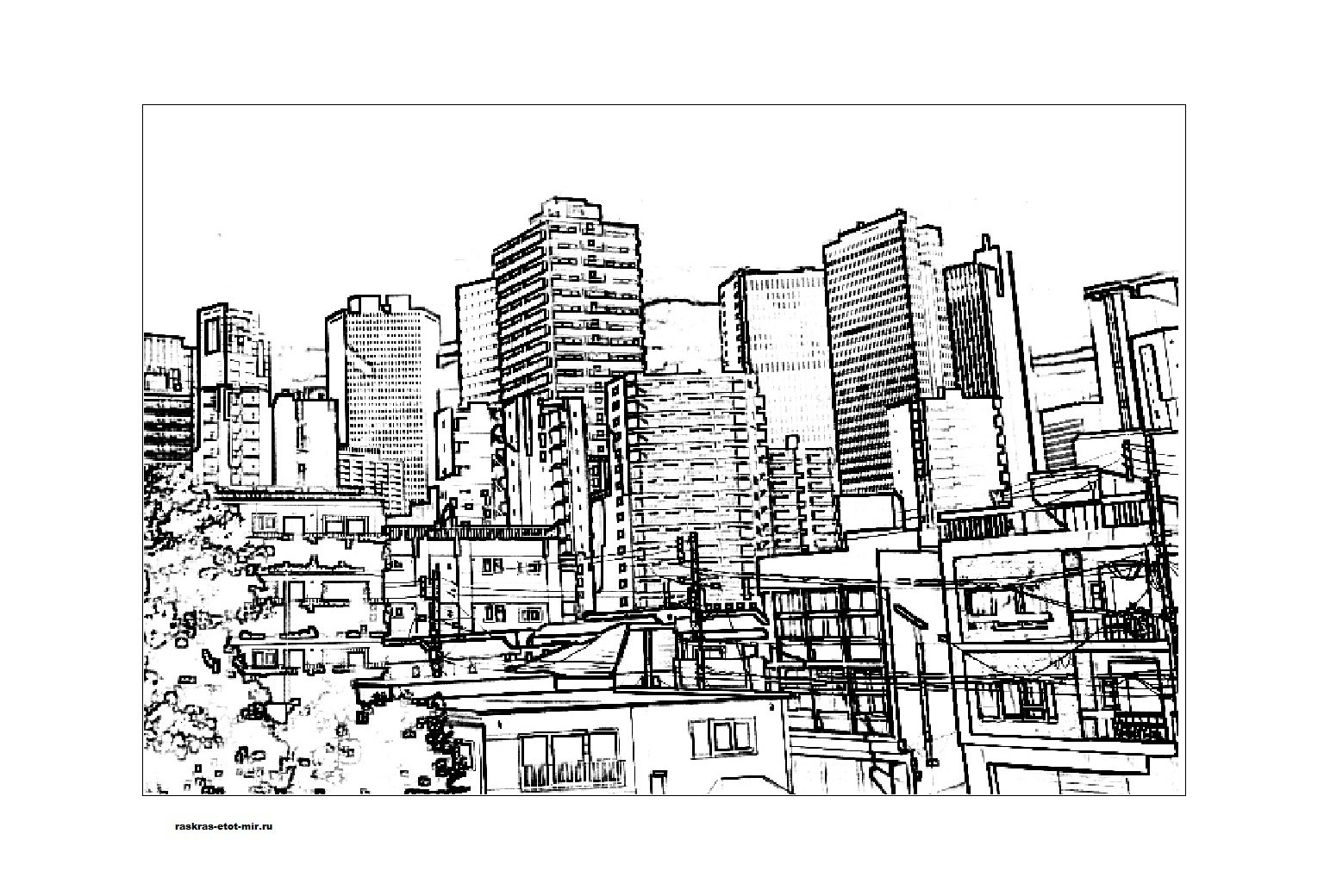 ![Городской пейзаж раскраска]()