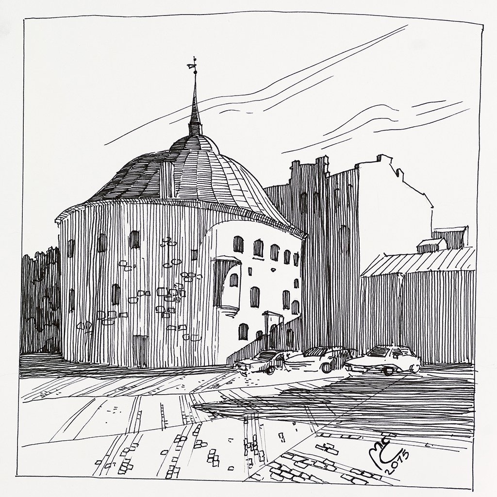 ![Круглая башня Выборг чб]()