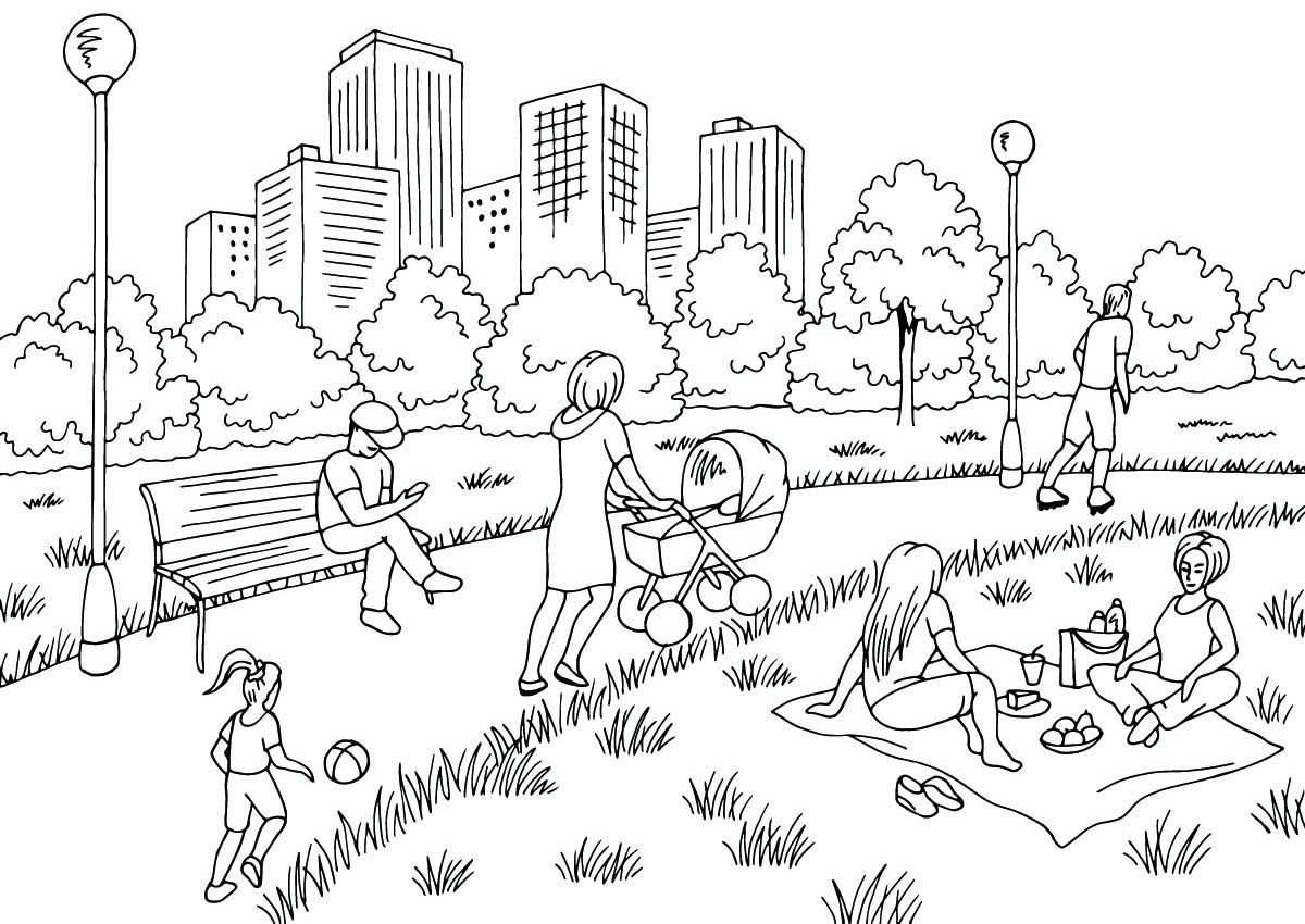 ![Раскраска городской парк]()
