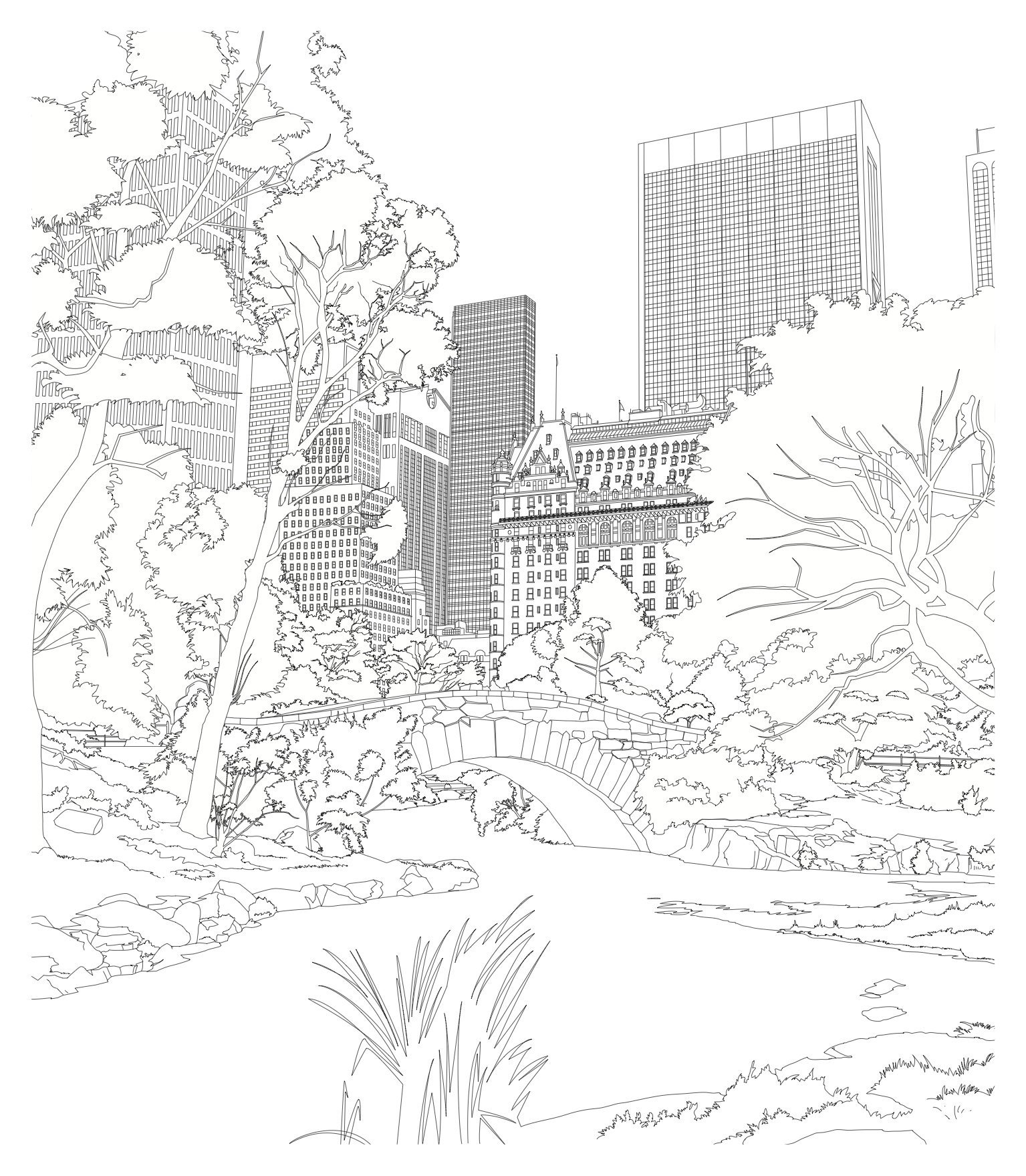 ![Парк в городе раскраска]()
