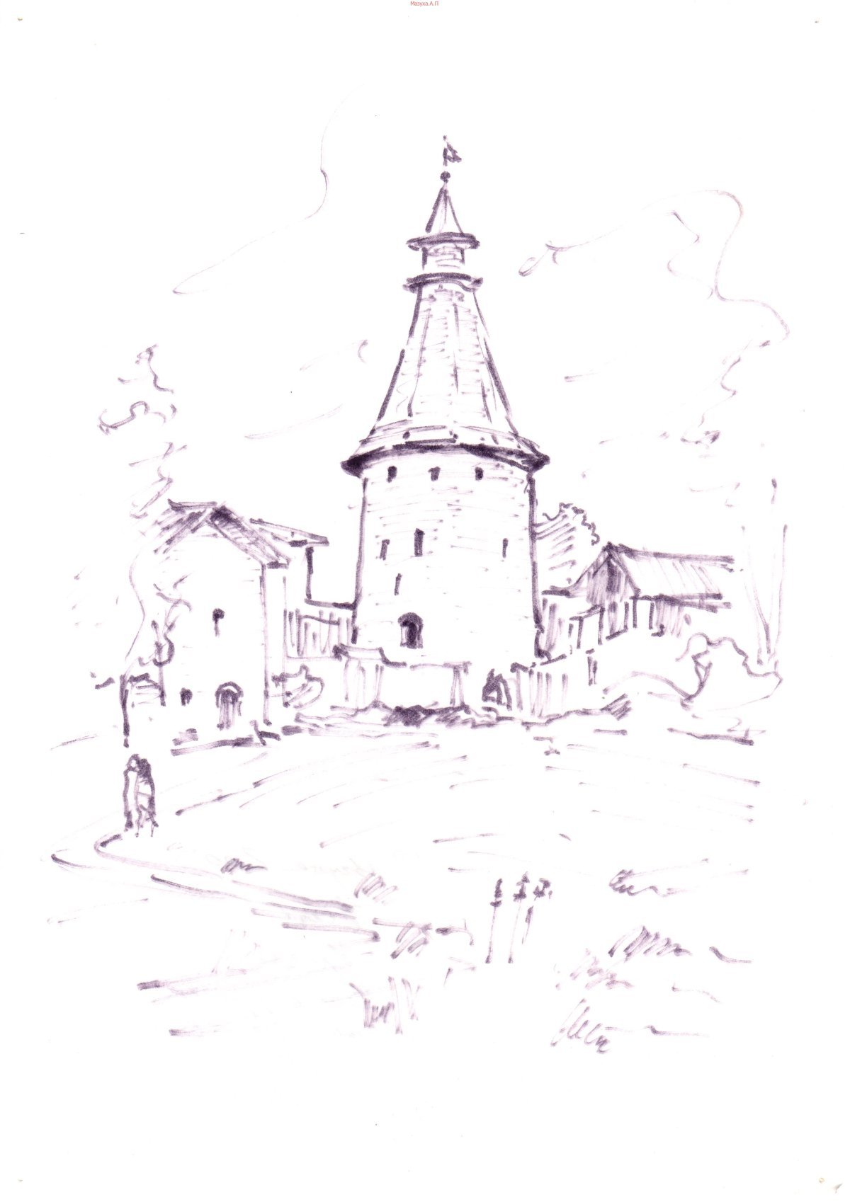 Спасо-Преображенский монастырь Ярославль рисунок карандашом