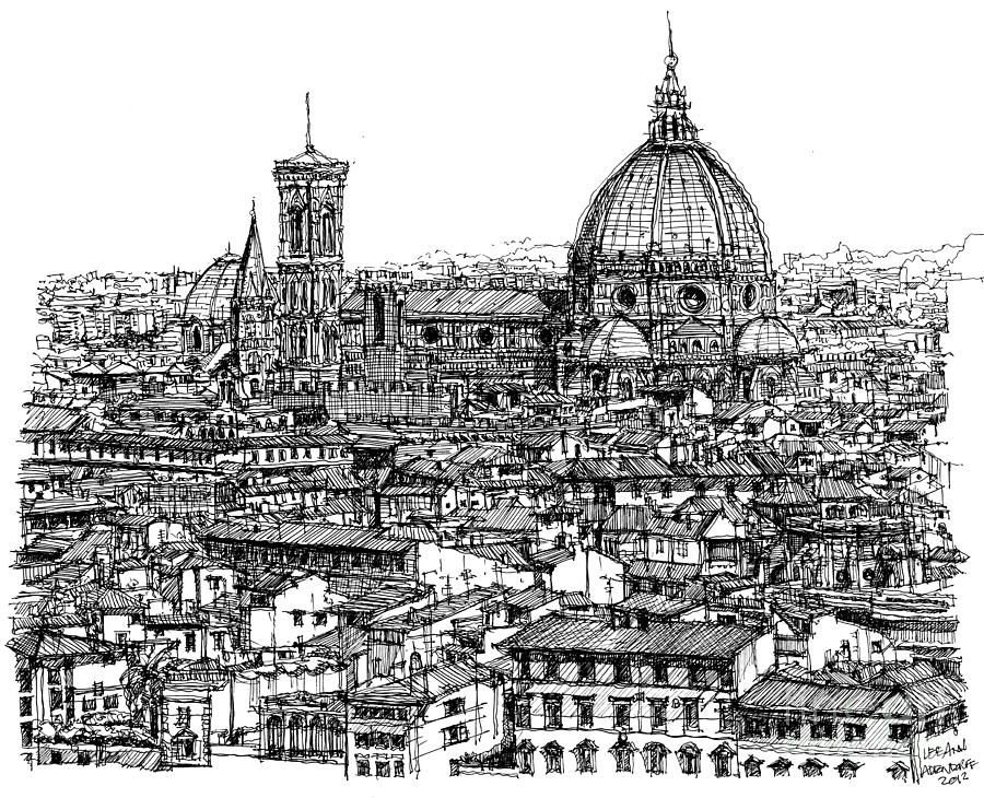 ![Санта-Мария-дель-Фьоре Флоренция зарисовка]()