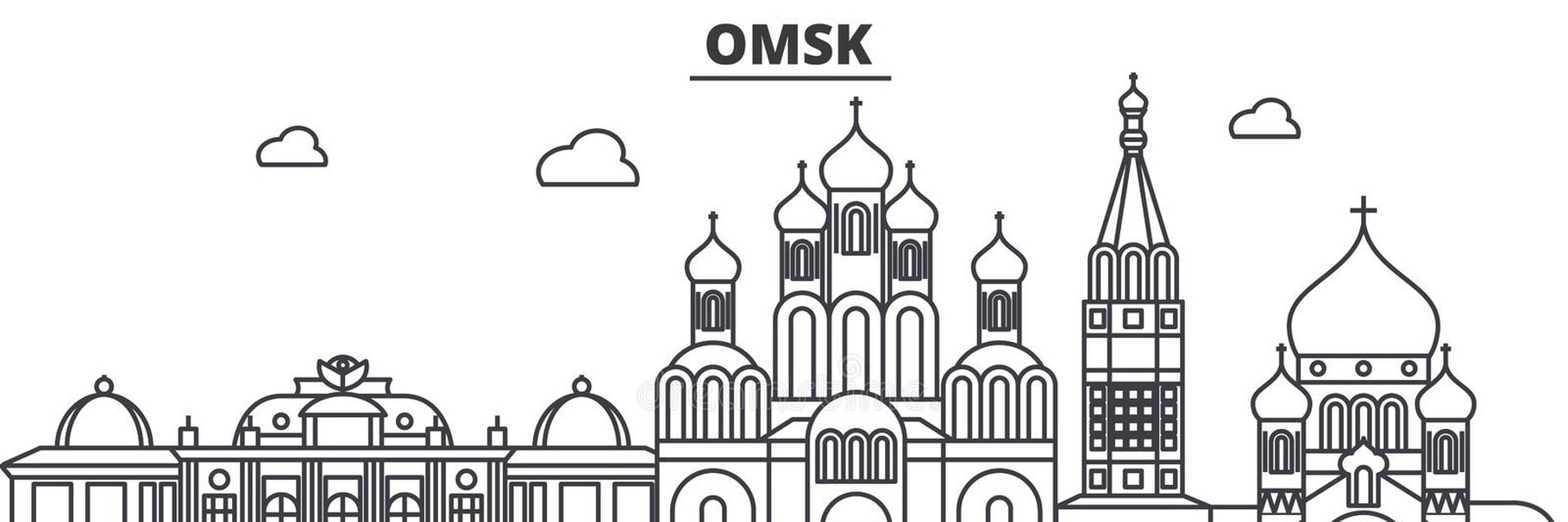 ![Силуэты достопримечательностей Омска]()