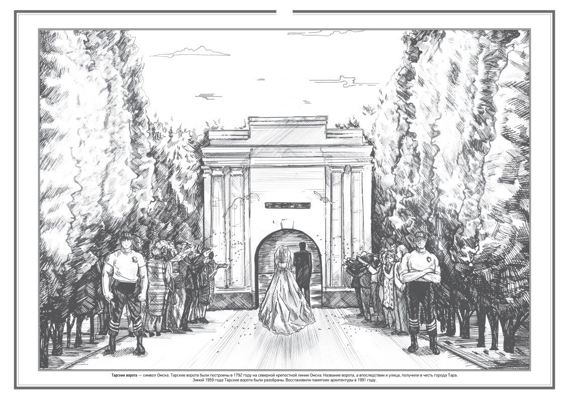 Тарские ворота Омск рисунок